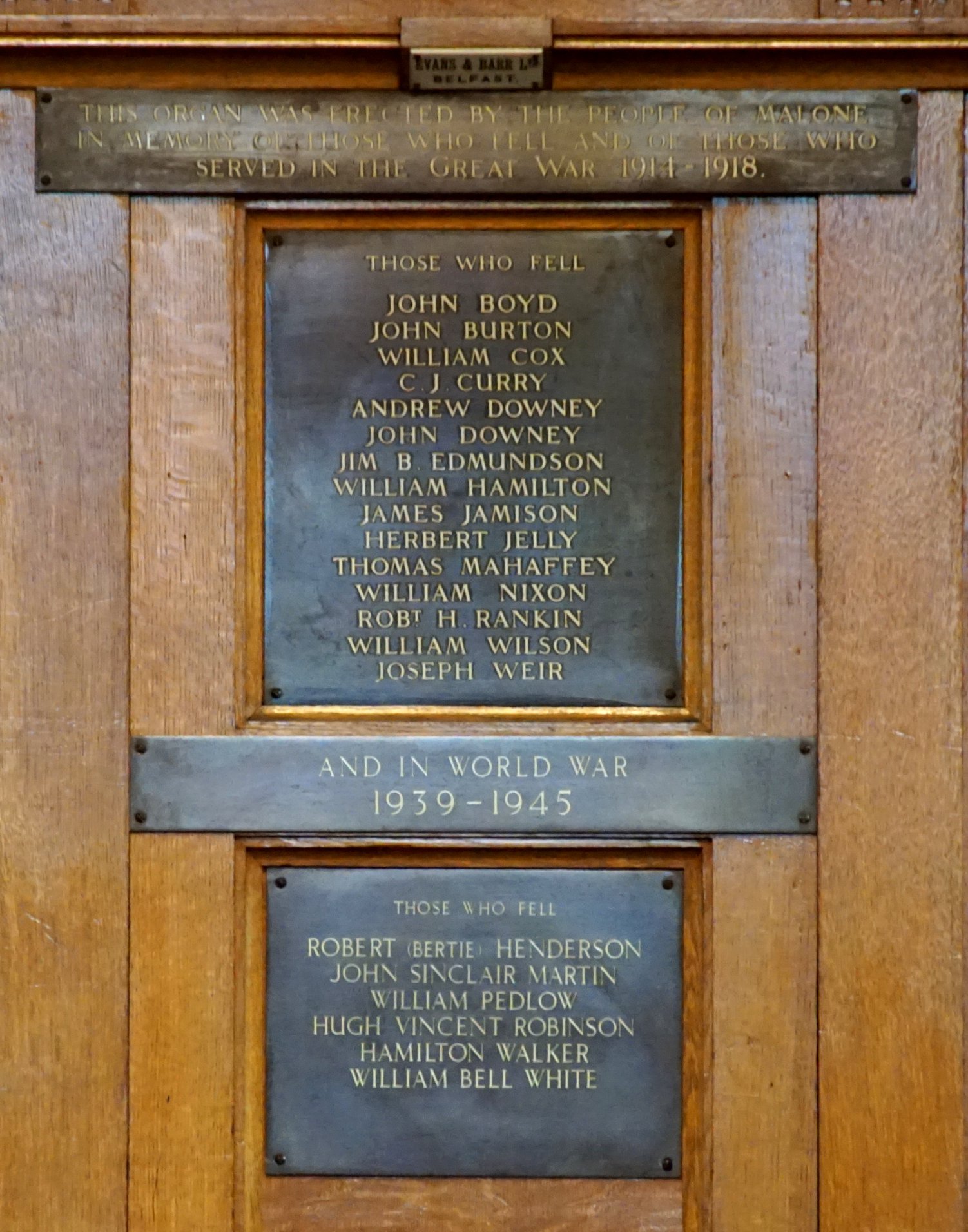 Malone Presbyterian Church - 'Memorial Organ', 'Fallen' Panel
